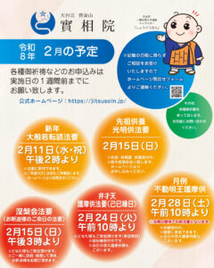 不動明王護摩祈祷については、毎月28日の御縁日に厳修致します。下記の日程をご覧ください。