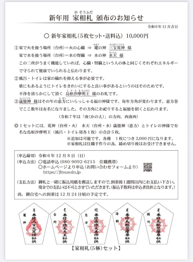 ①台所(竈・かまど)②台所(流し)③風呂④トイレの気を調えるためのお札です。