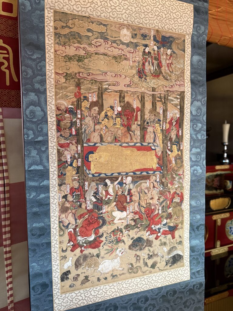 2月に入りましたので、ご本堂にお釈迦様の涅槃図をおかけしております。