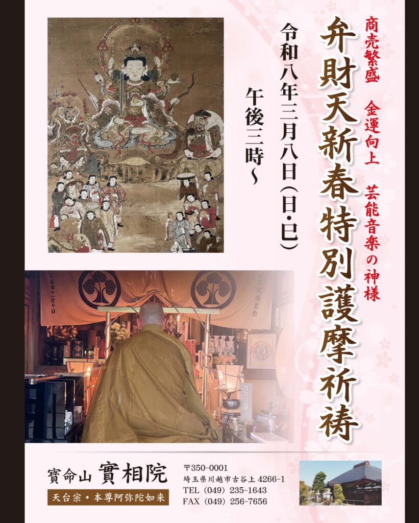 さて、本年も新春の弁財天様の特別護摩祈祷のご案内です。