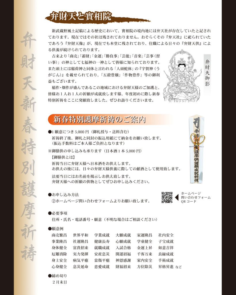 「弁財天新春特別護摩祈祷申込み」とご記入の上