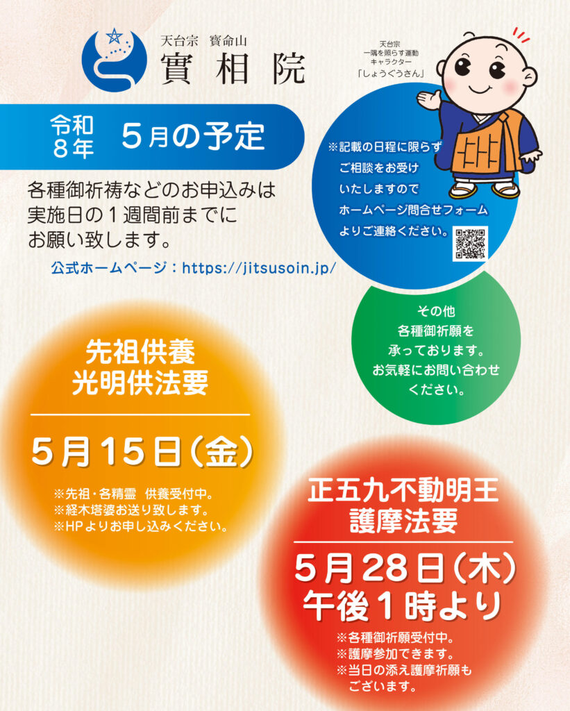 是非、皆様もこの5月にお心内の願いを仏様にお届けに